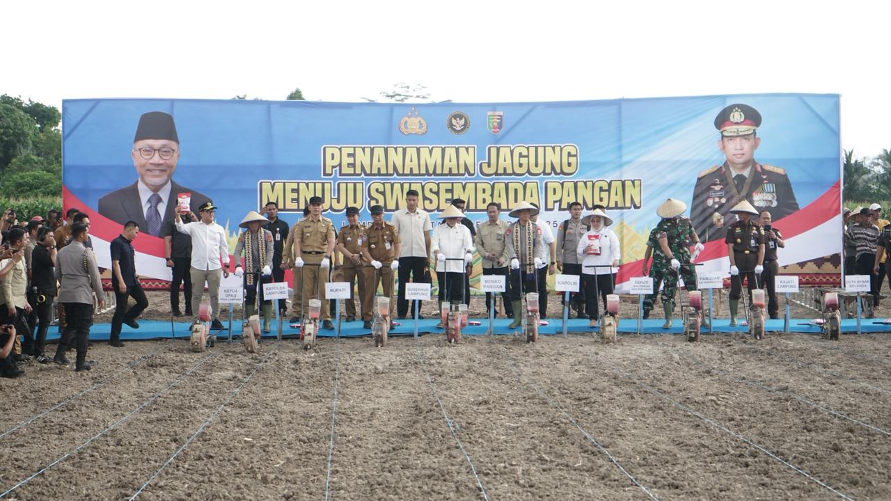 Wakapolri dan Kapolda Lampung Dampingi Menko Pangan Zulkifli Hasan Tanam Jagung di Lampung Selatan