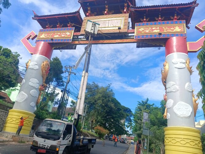 Sebelumnya, keberadaan tulisan beraksara Cina di gapura itu menuai kritik dari sejumlah warga yang menganggapnya tidak mencerminkan nilai budaya lokal.