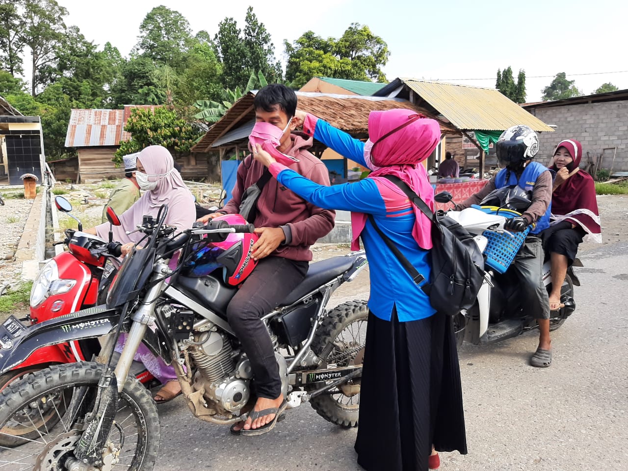 POLIS, LUWU UTARA — Sebagai bentuk kebersamaan serta peduli kepada masyarakat Mappedeceng ditengah merebaknya wabah Corona, Persakmi, DPD PPNI Luwu Utara, IAI, Forum Kabupaten Sehat, dan Tim Satgas Covid-19 Kecamatan Mappedeceng.bagikan 350 masker kepada pengendara Roda 2 hingga Roda 4