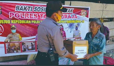 “Selaku pengemban Pelindung, Pengayom, dan Pelayan masyarakat, kita harus gelorakan semangat kepedulian di tengah pandemi Covid-19, demi kemanusiaan, prioritaskan bantuan kepada warga yang kurang mampu, mereka inilah saudara saudara kita yang paling merasakan dampak sosial dari Covid-19,”.sekilas kutipan dari Liliek Tribahwono, Kapolres Tana Toraja.