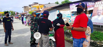 Personel Polsek Malangke Polres Luwu Utara mengatakan bahwa kegiatan ini dalam rangka mencegah penularan virus Corona dan sekaligus mensosialisasikan maklumat Kapolri tentang penanganan pencegahan virus Corona untuk tetap di rumah, Menjaga jarak fisik (physical distancing) dan menghimbau kepada warga masyarakat agar menjalankan imbauan Pemerintah program masker untuk semua sesuai anjuran organisasi kesehatan dunia (WHO).
