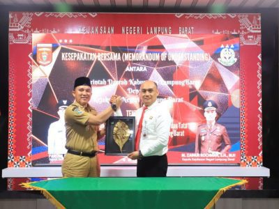 Kesepakatan bersama ditandai dengan penandatanganan Memorandum Of Understanding (MoU) oleh Bupati Lampung Barat Parosil Mabsus dan Kepala Kejaksaan Negeri setempat M. Zainur Rochman di Aula Kejaksaan setempat, Senin 14 Juli 2025.