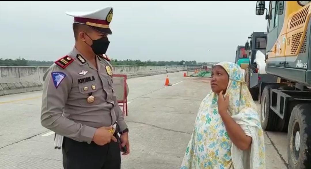 “Saya mengajak saudari Sri untuk ikut mobil dinas Lalu lintas dan membawanya ke tempat yang lebih aman dan di serahkan ke petugas Exit Tol Gunung Sugih Lampung tengah,” ujarnya.