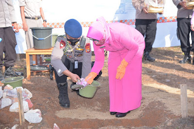Bandar Lampung – Ketua Bhayangkari Daerah Lampung Ny. Linda Hendro Sugiatno bersama Kapolda Lampung Irjen Pol. Hendro Sugiatno melakukan peletakan batu pertama pembangunan kantor Bhayangkari Daerah Lampung di kompleks perkantoran Mapolda Lampung jalan Ryacudu Bandar Lampung, Rabu (23/6/2021).