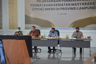 Dalam kesempatan tersebut Kepala Dinas Kesehatan (Kadiskes) Provinsi Lampung memaparkan, data zona RT pada PPKM Mikro perpanjangan tahap tiga, berdasarkan data dua mingguan pada pelaksanaan PPKM Mikro perpanjangan tahap 3 terlihat tidak ada perubahan RT dengan wilayah zona merah.