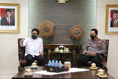 Jakarta – Kapolri Jenderal Listyo Sigit Prabowo menerima audiensi Menteri Desa, Pembangunan Daerah Tertinggal, dan Transmigrasi (Mendes PDTT) Abdul Halim Iskandar, di Mabes Polri, Jakarta Selatan, Selasa (25/5/2021).