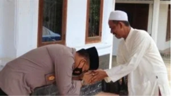 SERANG – Lakukan sowan sesepuh sekaligus bagikan bingkisan seperangkat alat ibadah, Kabid Humas Polda Banten Kombes Pol Edy Sumardi, S.I.K., MH. kunjungi pimpinan Pondok Pensantren Riyadhul Alwiyah, Pandeglang, Rabu (19/05/2021).