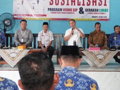 TULANG BAWANG BARAT – Bupati Tulang Bawang Barat (Tubaba), Ir. Novriwan Jaya, S.P., secara resmi membuka kegiatan Sosialisasi Program Nuwo SIP (Rumah Sehat, Indah, Produktif) dan Gerakan LIMAS (Peduli Rumah Sesama) di Balai Tiyuh Makarti, Kecamatan Tumijajar, pada Selasa (20/5/2025).