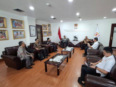 Empat personil dari Lampung yang dipimpin ketua umum KONI Provinsi Lampung, Taufik Hidayat didampingi Chrisna Putra, Margono Tarmudji dan Riagus Ria menjadi tamu pertama hari ini yang dijadwalkan bertemu dengan ketua KONI Pusat Marciano Norman di ruang kerjanya yang didampingi oleh Waketum 1 Suwarno, Sekjen Lukman Djajakesuma dan Wakabid Humas Tirto Prima, Kamis 10 Juli 2025 pagi.