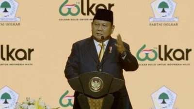 “Memang saya setuju Golkar gudangnya orang hebat, banyak melahirkan partai dan di kabinet mungkin partai paling banyak kader di kabinet ya Golkar,” kata Prabowo dalam pidato di Puncak HUT ke-60 Golkar di SICC, Bogor, Jawa Barat, Kamis (12/12).