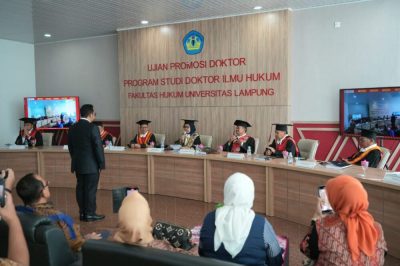 Lampung – Fakultas Hukum Universitas Lampung (Unila) mengadakan Ujian Terbuka Promosi Doktor Ilmu Hukum pada Jumat, 10 Januari 2025. Acara berlangsung di Gedung B lantai dua, Program Studi Doktor Ilmu Hukum.
