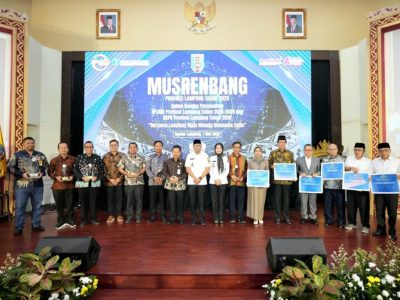 Penghargaan tersebut diberikan dalam rangkaian kegiatan Musyawarah Perencanaan Pembangunan (Musrenbang) Provinsi Lampung yang digelar di Auditorium Kantor Perwakilan Bank Indonesia Provinsi Lampung, Rabu (7/5/2025).