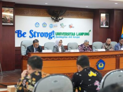 Kegiatan berlangsung di ruang sidang utama lantai dua Rektorat Unila dan dihadiri oleh Rektor Unila Prof. Dr. Ir. Lusmeilia Afriani, D.E.A., IPM., ASEAN Eng., Direktur Jenderal Kekayaan Intelektual Ir. Razilu, M.Si., CGCAE., serta Direktur Pemberdayaan dan Edukasi DJKI Drs. Yasmon, M.L.S. Hadir pula jajaran pimpinan Unila, perwakilan Kanwil Kemenkumham Provinsi Lampung, serta dosen dan mahasiswa.