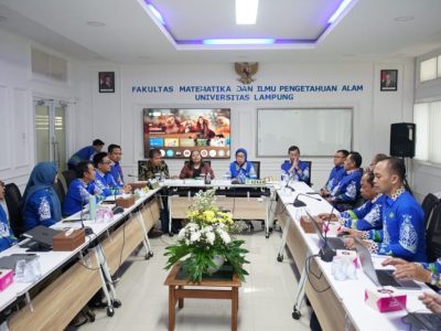 Kegiatan berlangsung di ruang sidang lantai dua Gedung Dekanat FMIPA Unila, Kamis, 22 Mei 2025, dan merupakan bagian dari proses asesmen Lembaga Akreditasi Mandiri Sains Alam dan Ilmu Formal (LAMSama).