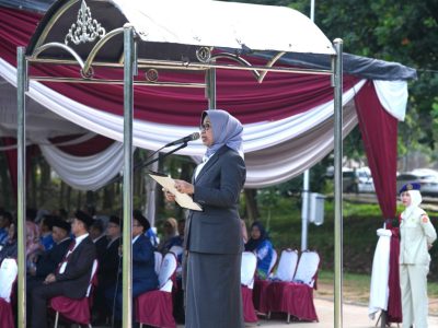 Rektor Unila dalam upacara tersebut bertindak sebagai pembina upacara dan membacakan amanat dari Kepala Badan Pembinaan Ideologi Pancasila (BPIP) Republik Indonesia, Yudian Wahyudi.