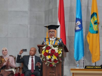 Rektor Unila, Prof. Dr. Ir. Lusmeilia Afriani, D.E.A., IPM., ASEAN Eng., menyampaikan ucapan selamat kepada para lulusan dan mengapresiasi capaian akademik mahasiswa, di mana pada periode ini 70% mahasiswa berhasil meraih Kelulusan Tepat Waktu (KTW).