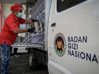 Petugas menyiapkan makanan ke dalam mobil untuk didistribusikan ke sekolah untuk program Makan Bergizi Gratis (MBG). Foto: ANTARA