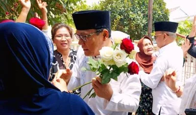Dari kejauhan, Rubiah membawa setangkai bunga mawar putih ditangannya. Seperti menahan haru, nenek berusia sekitar 80 tahun ini dengan setia menunggu kedatangan Paslon Wali Kota dan Wakil Wali Kota Metro nomor urut 2, Wahdi-Qomaru.