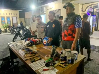 “Dari penggerebekan ini, kami menyita tujuh motor, 13 plat TNKB motor, satu plat TNKB mobil, serta alat-alat pemalsuan seperti pahat, gerinda, dan cat besi,” tambah Kompol Rohmawan.