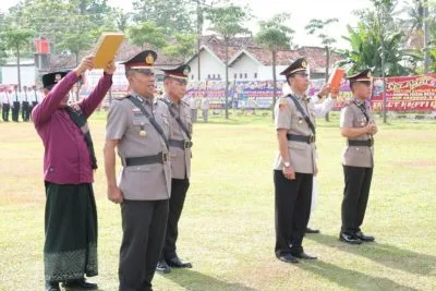TULANG BAWANG – Polres Tulang Bawang, Polda Lampung, menggelar upacara penyerahan jabatan Kepala Bagian (Kabag) Sumber Daya Manusia (SDM) dan serah terima jabatan (sertijab) Kapolsek Banjar Agung, Kapolsek Rawa Jitu Selatan dan Kapolsek Rawa Pitu.