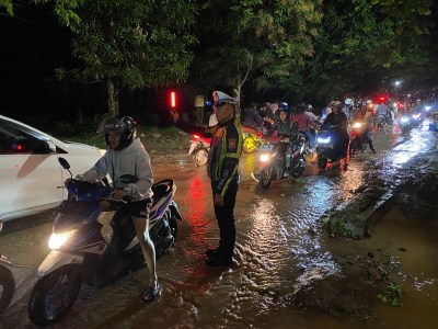 Kemacetan panjang dari dua arah sempat terjadi, hingga sekitar pukul 21.30 WIB akhirnya jalan yang terputus bisa kembali dilalui oleh pengguna jalan.