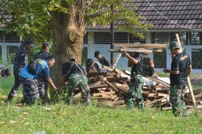 Kompak TNI Wilayah Provinsi Lampung Bersihkan SLB Dharma Bhakti Dharma Pertiwi