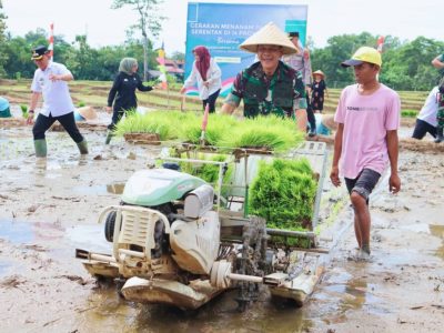 Metro, Lampung – Dalam upaya memperkuat ketahanan pangan nasional dan mewujudkan swasembada pangan di daerah, Komandan Korem 043/Gatam Brigjen TNI Rikas Hidayatullah, S.E., M.M. mengikuti kegiatan gerakan tanam padi serentak secara virtual bersama Presiden RI Prabowo Subianto, Rabu pagi (23/4/2025).