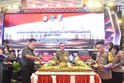 Lampung – Apel Tiga Pilar dalam rangka Pilkada Serentak Provinsi Lampung Tahun 2024 yang dibuka Pj. Gubernur Lampung Dr. Drs. Samsudin, S.H., M.H., M.Pd., dan dihadiri Kapolda Lampung, Ketua DPRD Provinsi Lampung, Kabinda Lampung, Ketua Bawaslu Provinsi Lampung, Ketua KPU Provinsi Lampung, bertempat di Ballroom Hotel Novotel Jl. Gatot Subroto Sukaraja Bandar Lampung. Kamis (03/10/2024).